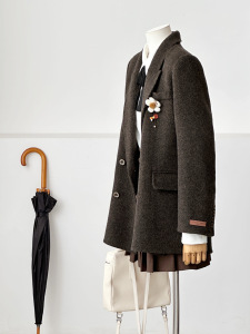 【冬日摩洛】新款人字纹休闲通勤百搭韩系西装款羊毛大衣HL27-4