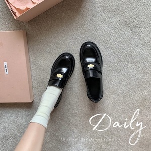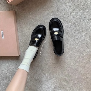 葡萄家~牛皮版张元英同款~金币粗跟懒人一脚蹬乐福单鞋女小皮鞋女
