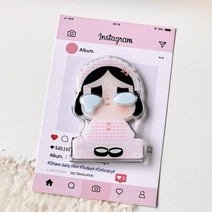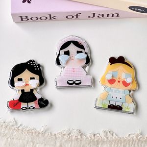 日韩可爱ins爱心哭娃粘贴式补妆镜手机支架横竖两用折叠翻盖镜面