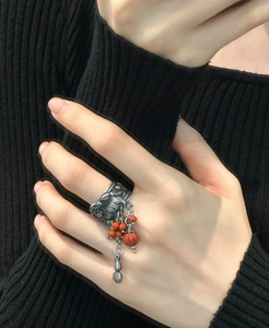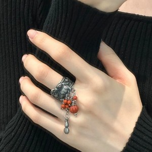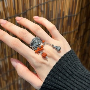 「守护」新中式小圆珠南瓜醒狮子戒指女做旧潮流新年福气百搭指环