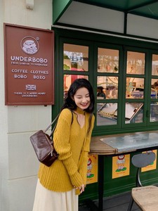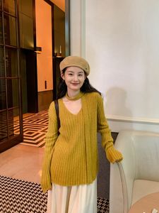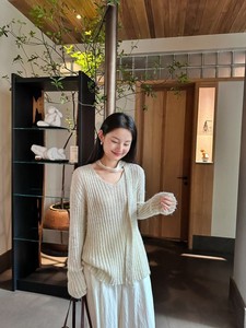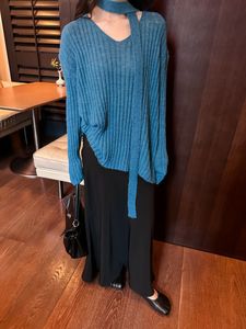 DIGM | 2025秋季慵懒风软糯马海毛V领坑纹飘带针织衫毛衣女88939