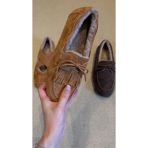 复古百搭乐福鞋女款2025秋冬绒面流苏软底加绒保暖一脚蹬平底单鞋
