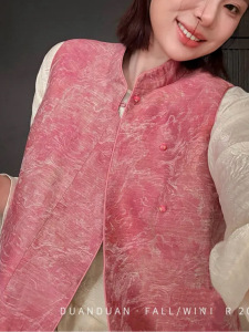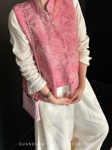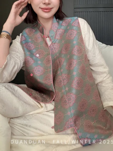 草木染蜀锦两面穿马甲复古新中式国风立领修身晕染东方雅韵马夹女