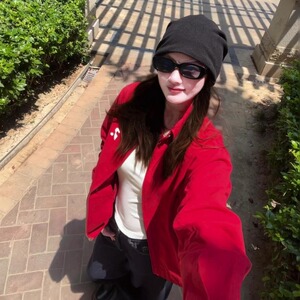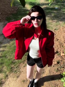 美式复古夹克衬衫女早秋新款翻领红色拉链外套宽松休闲情侣上衣潮