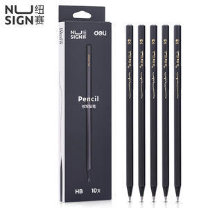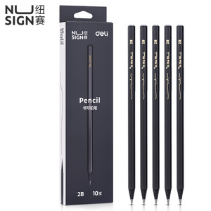 得力纽赛铅笔2B HB幼儿园黑木铅笔10支装小学生六角铅笔文具批发