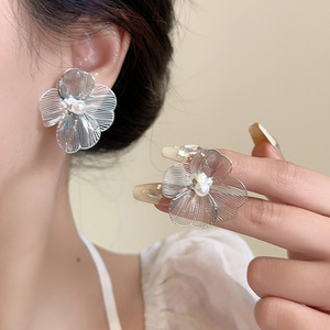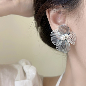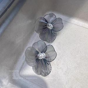 夸张大花朵耳环2025新款爆款珍珠耳钉女小众设计感气质名媛耳饰