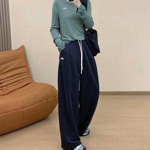 alo25新款女士显瘦天丝裤垂感直筒阔腿裤垂坠感宽松休闲拖地长裤