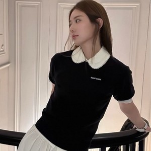 【JYY】平替南油高定mi*iu25Ss藏青色插肩袖徽标短款修身圆领短袖