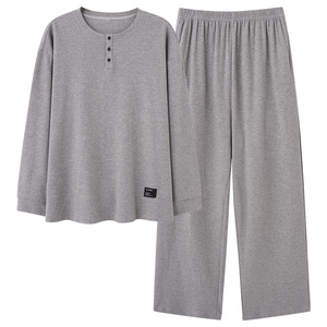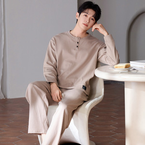 男士睡衣春秋季华夫格休闲纯棉长袖四季大码可外穿家居服秋冬套装
