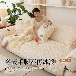 奶油风毛绒沙发垫小红书爆款沙发盖巾布固定防滑直排客厅沙发坐垫