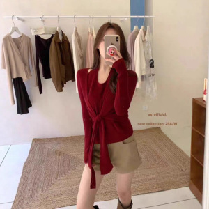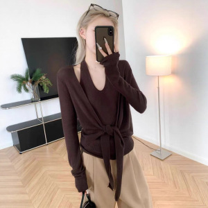 6109小李纯色百搭好看假两件挂脖上衣-不退换
