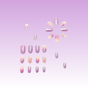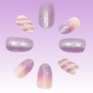 圣诞款短杏仁甲闪粉线条雪花渐变美甲甲片可拆卸穿戴甲甲片批发