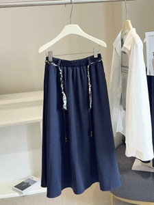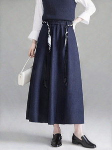 高级感老钱风丝巾腰带半身裙女秋季2025新款遮胯百搭A字中长裙子