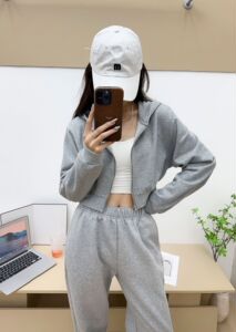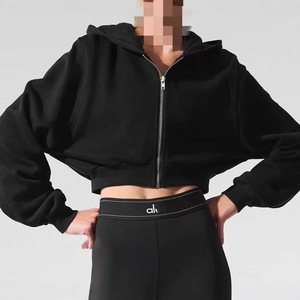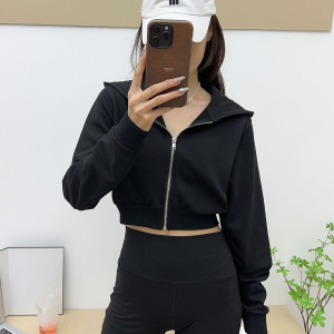 拉链简约修身外套女alo2025春秋新款连帽正肩卫衣收腰拉链外套女