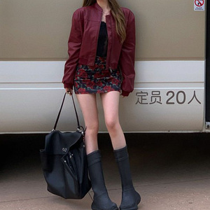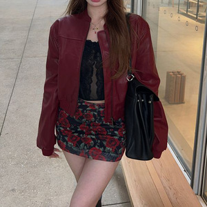 潮酷安可拉红pu皮衣外套女秋季2025新款复古机车宽松夹克美式上衣