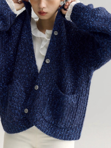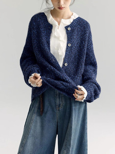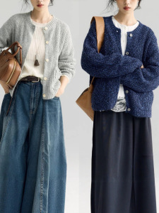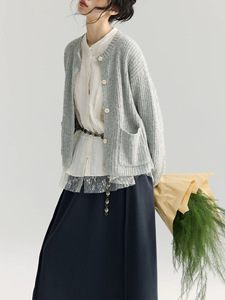 白描工作"秋叶絮语"甄选羊驼毛花纱肌理氛围感圆领针织开衫
