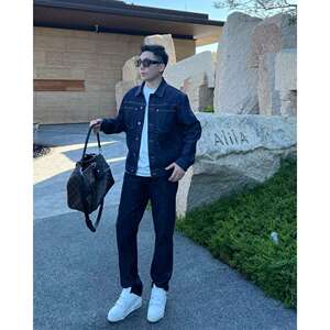 秋季高品质时尚潮流简约百搭复古美式长袖男士夹克牛仔裤休闲套装