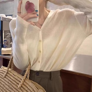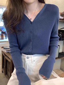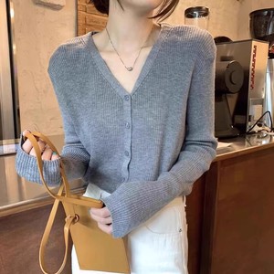针织衫女v领开衫2025新款黑色薄款打底上衣春秋灰色内搭毛衣外套