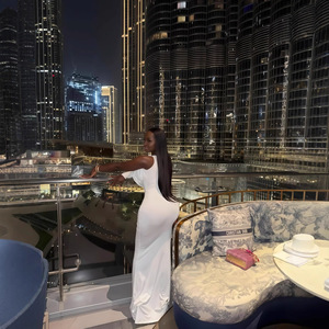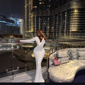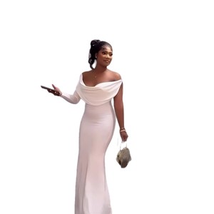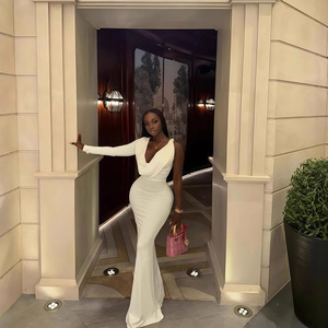 欧美跨境女装2025秋季新款纯色独袖深V荡领修身气质长款连衣裙