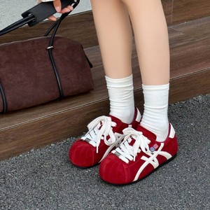 欧货磨砂红色大头丑萌系带面包鞋休闲板鞋显瘦德训鞋平底鞋运动鞋