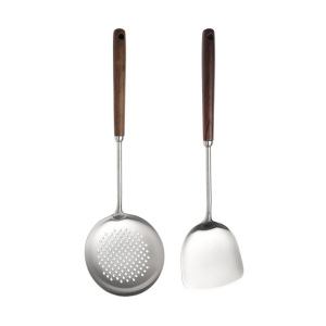304不锈钢胡桃木柄长柄大勺子家用盛汤勺批发木柄厨具漏勺火锅勺