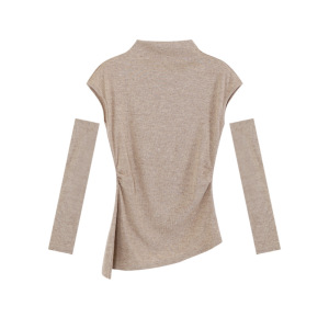 爱西里2025秋季简约中高领收腰显瘦斜下摆坎肩袖套针织衫女15365