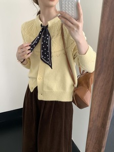 2025秋冬新款丝巾设计感针织衫开衫法式气质甜美风软糯毛衣外套女
