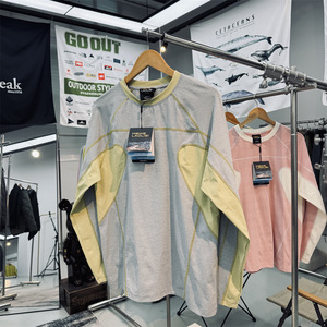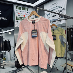 棉感科技面料透气排汗抗通用撞色拼接户外山系长袖速干T恤 9211