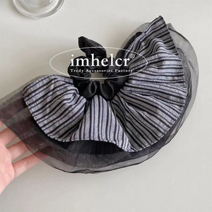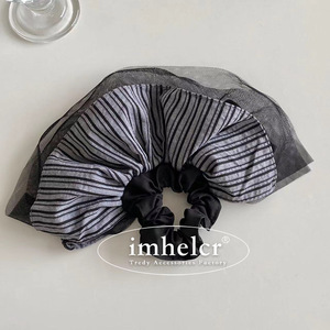 韩系条纹黑纱裙摆发圈高级设计感扎马尾头绳优雅气质头饰发绳皮筋