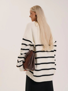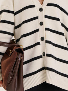 2025新款百搭单排扣V领外搭毛衣外套秋冬款条纹慵懒外穿针织开衫