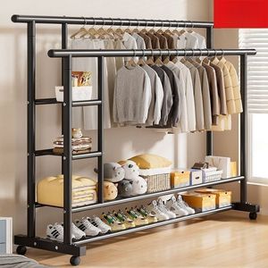 特粗双杆侧网宿舍衣帽架出租屋移动衣架落地家用衣服架子室外晾衣