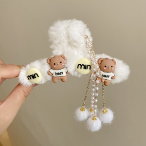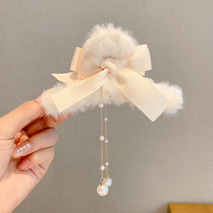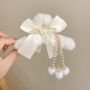 3#白色蝴蝶结珍珠毛球-底夹11cm