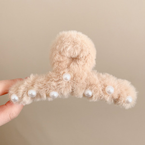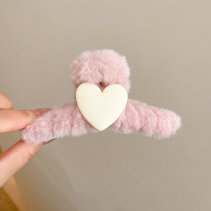 4#卡粉色毛绒波浪抓夹(约15cm)