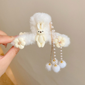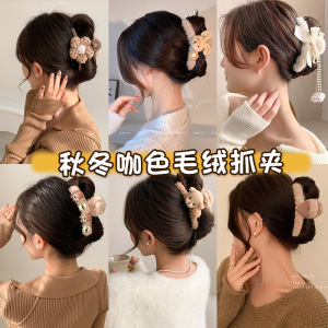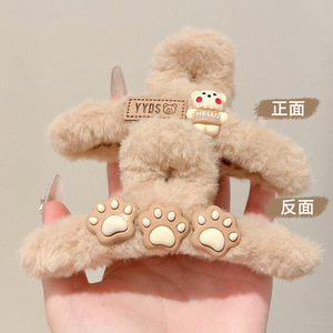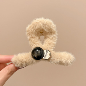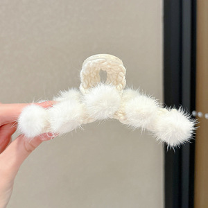 大号毛绒抓夹女2025新款秋冬高级感毛毛发夹后脑勺鲨鱼夹发卡头饰