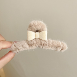 4#咖色蝴蝶结珍珠毛球-底夹11cm