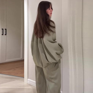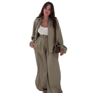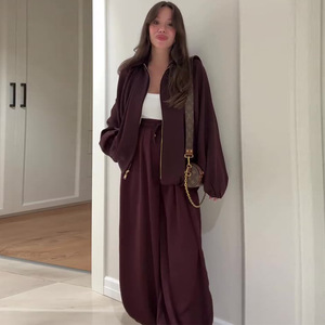 2025秋季新款欧美亚马逊跨境外贸女装长袖拉链简约宽松休闲两件套