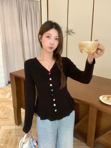 实拍2025秋装胖mm大码彩色纽扣长袖针织衫上衣甜美减毛衣外套5010