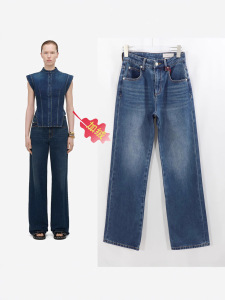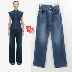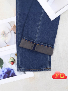 麦昆直筒牛仔裤女款深蓝色加绒高腰修身阔腿欧美风长裤女2025冬款