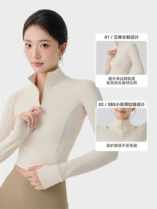 云感暖绒锁温运动外套女秋冬加厚立领修身收腰显瘦长袖瑜伽服上衣