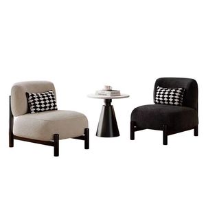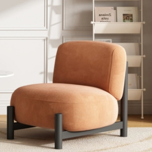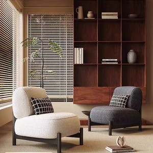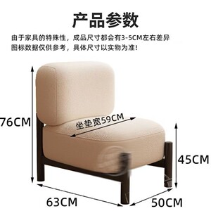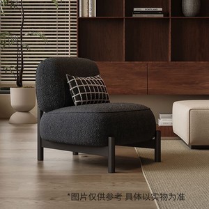 奶油中古风客厅单人沙发设计师款客厅美容院接待布艺羊羔绒休闲椅