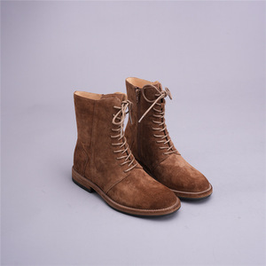 2025年秋冬新款平底马丁靴圆头擦色中筒侧拉链系带百搭休闲女