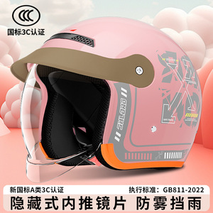 3C认证电动摩托车可收镜片安全时尚男女爆款护颈防摔头盔安全帽