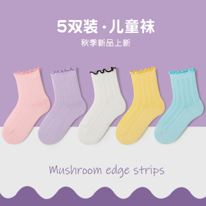 儿童袜子秋冬款女童棉袜子中筒袜木耳边婴儿袜子吸汗防臭儿童袜