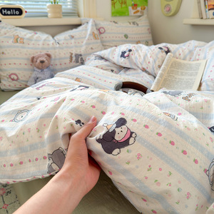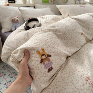 母婴a类超柔双层纱四件套ins风木棉小碎花学生宿舍床上三件套批发