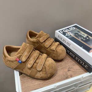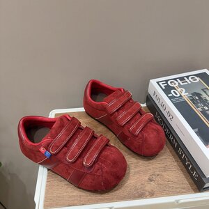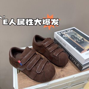 2025年新款磨砂真皮魔术贴卡皮巴拉大头休闲板鞋德训鞋平底单鞋女
