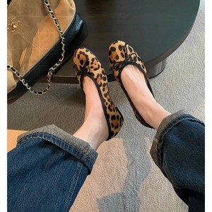 葡萄妈同款现货~ 真皮经典圆头浅口百搭蝴蝶结豹纹工作平底单鞋女