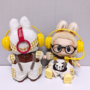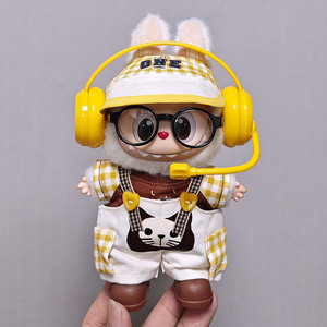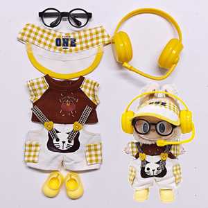 仅娃衣】123代labubu娃衣格衫猫咪背带裤套装15cm17cm拉布布娃衣