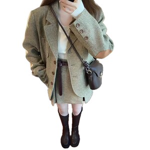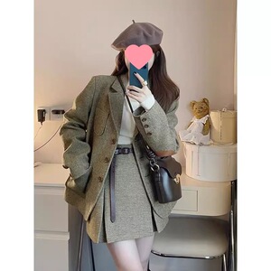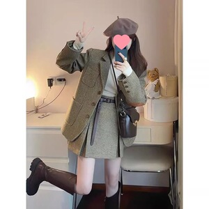 毛呢西装套装裙女2025秋冬装小个子穿搭韩系高级感呢子外套两件套