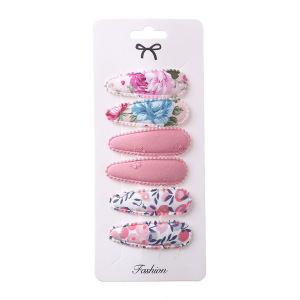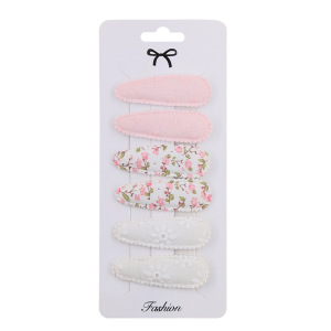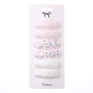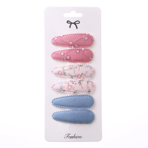 韩版水滴刺绣布艺6件套发卡甜美花朵发夹宝宝不伤发bb刘海边夹