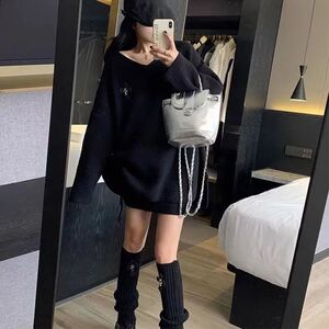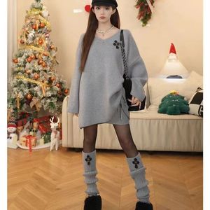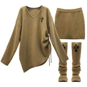 秋冬时尚氛围感叠十字架毛衣宽松抽绳羊毛套装上衣短裙小众三件套